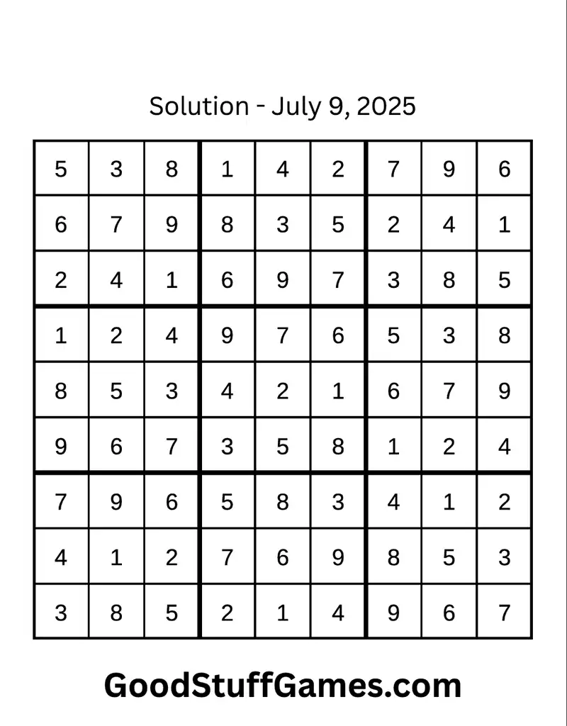 Here’s today’s free sudoku printable for July 9th. This one is medium difficulty.