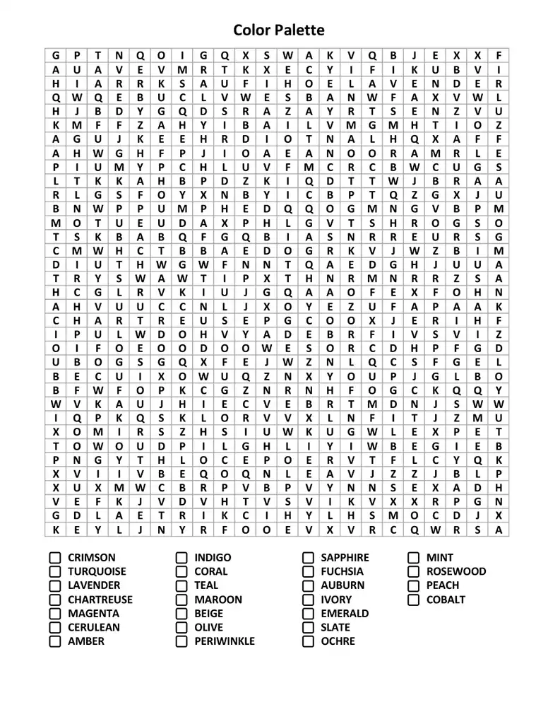 Here’s today’s Free Printable Word Search Puzzle. The theme of the day is Colors.